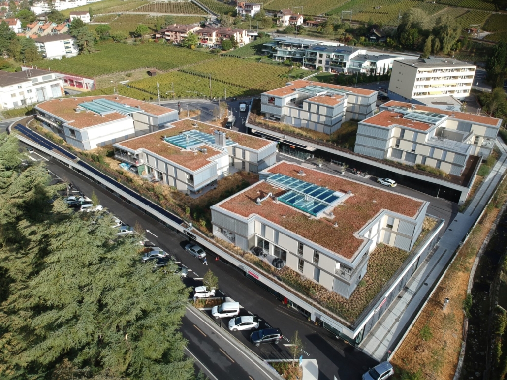 En tout, 13 bâtiments ont été démolis pour faire place à une vaste zone verte, comprenant un quartier résidentiel et des espaces dédiés à l'artisanat. Les cinq immeubles construits selon les normes Minergie offrent environ soixante appartements en location. En dessous, deux niveaux de galettes accueillent les anciens artisans ainsi que de nouveaux occupants. Un deuxième sous-sol comprend des dépôts ainsi qu’un parking souterrain de 86 places. À l’extérieur, 44 places de stationnement ont été aménagées.